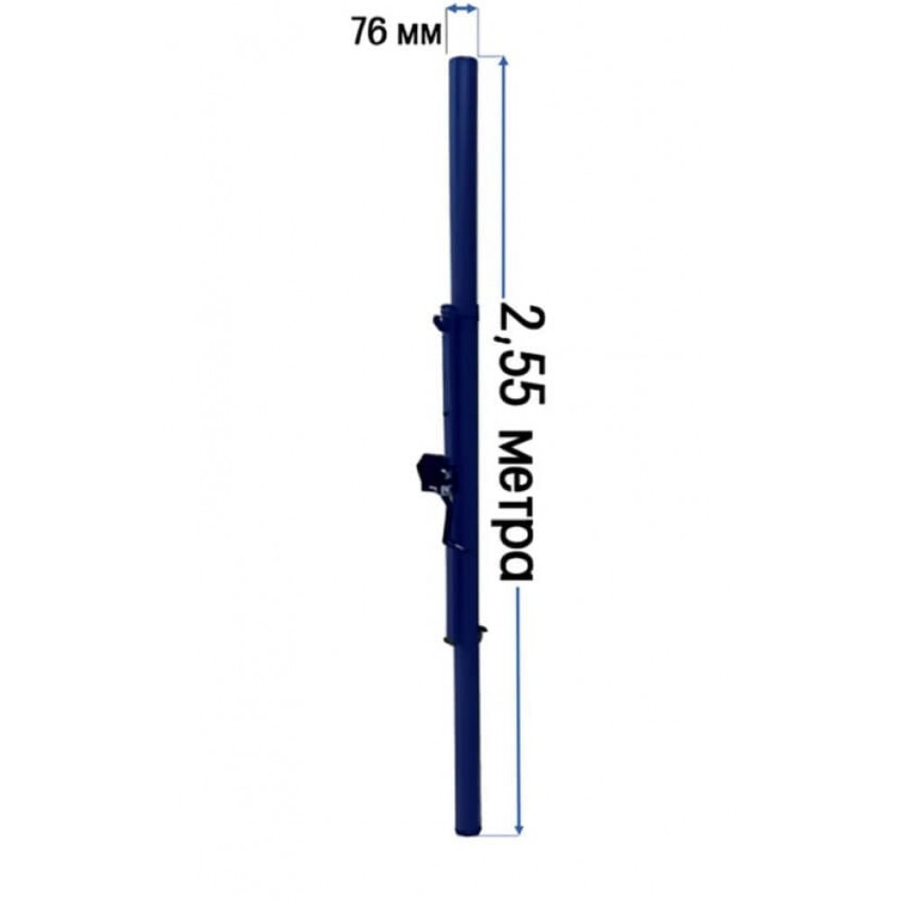 Универсальные волейбольные стойки высотой 2,55 м, с системой натяжения и стаканами, предназначенные для различных видов спорта.